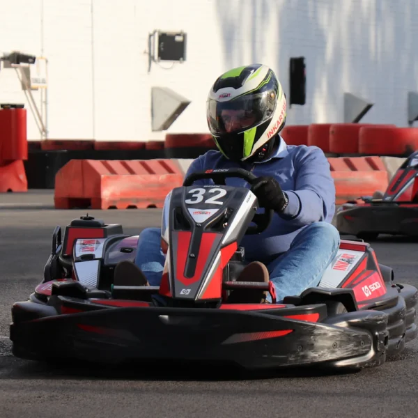 For those seeking the ultimate challenge, the Blue and Red tracks can be combined into one massive “mega track” powered by a fleet of more than 40 electric karts.